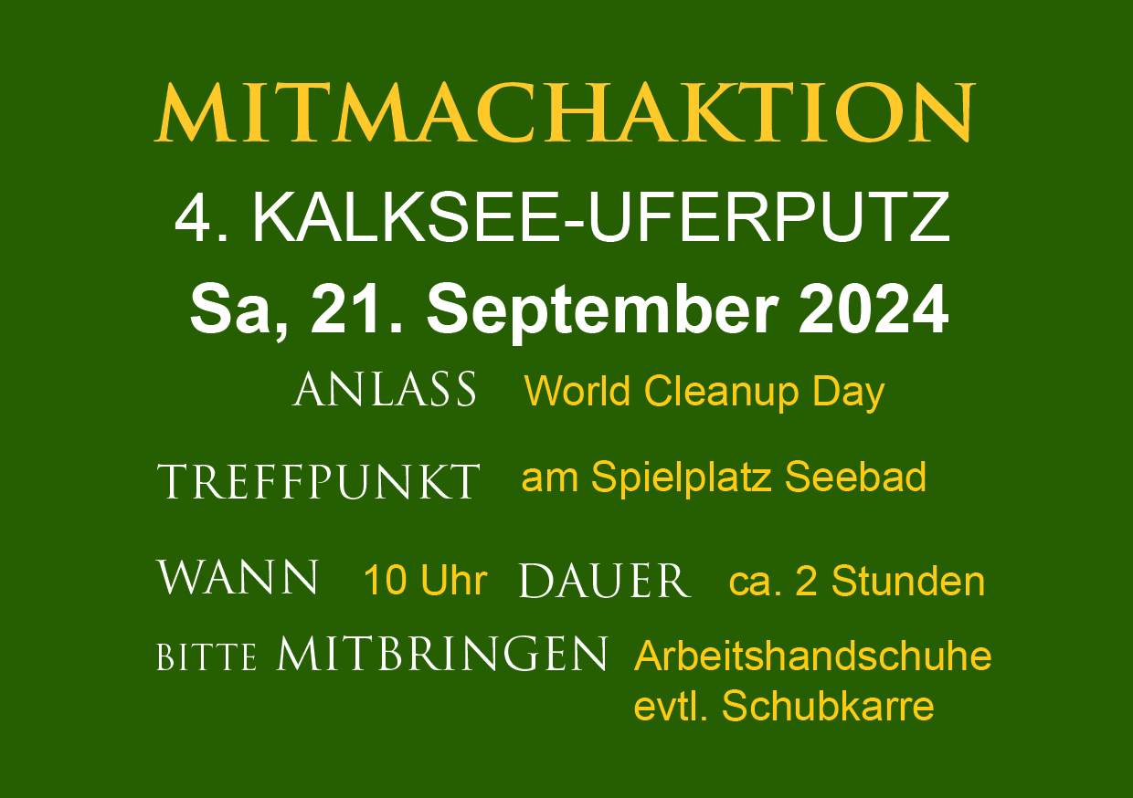 Bereits zum 4. Mal ruft der Rüdersdorfer Umweltarbeitskreis (RUAK) e.V. alle Interessierten zum Befreien des Kalksee-Ufers vom Müll auf.