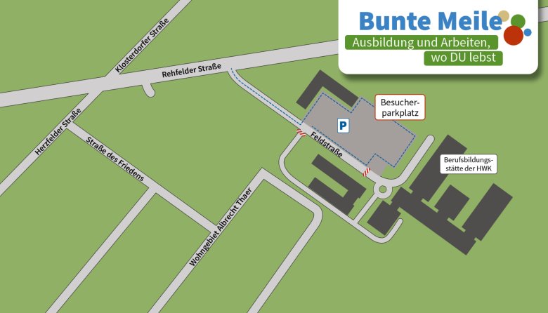 - Visitor car park HWK: Rehfelder Str. 50, 15378 Rüdersdorf bei Berlin OT Hennickendorf