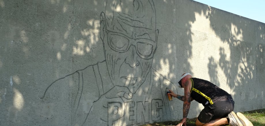 Am heutigen Freitag wurde die erste öffentliche Graffitiwand der Gemeinde Rüdersdorf bei Berlin offiziell eröffnet. Die etwa 175 Meter lange Wand befindet sich entlang der Biokompostieranlage der Berliner Stadtreinigung (BSR) in der Rehfelder Straße 22 A, 15378 Hennickendorf.
