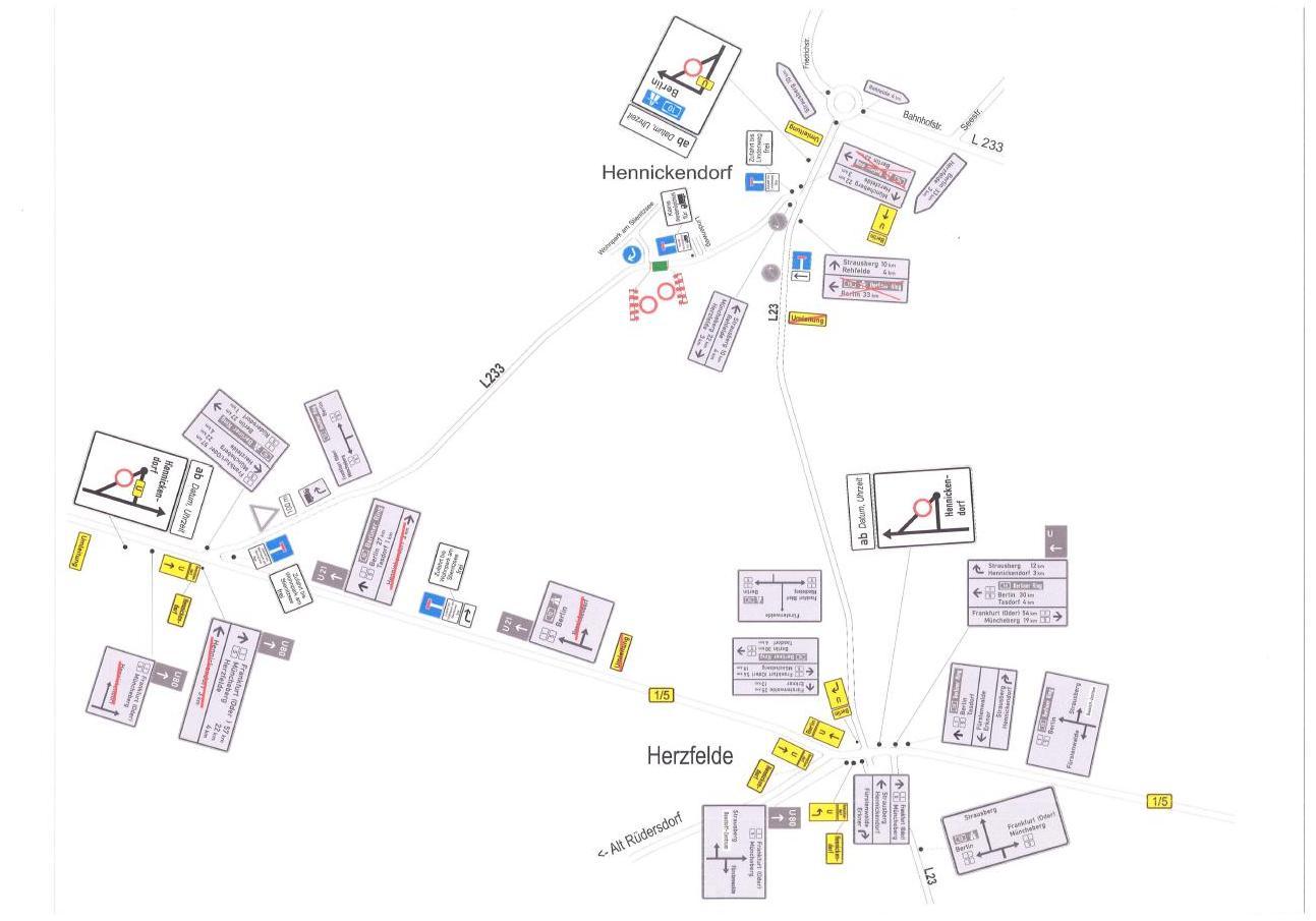 The diversion will be via the OT Herzfelde (B 1 and L 23). For more information, please refer to the traffic order below.