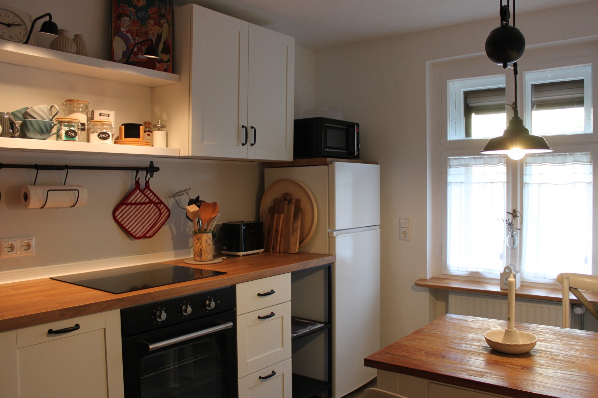 Unsere „Kleine Bleibe“ 41m², verfügt über einen separaten, ebenerdigen Eingangsbereich (1 Stufe), Flur, kombinierten Wohn- und Schlafraum, mit Doppelbett, Schlafcouch (Aufbettung für 2 weitere Personen/ Kinder möglich), TV und WLAN, eine voll ausgestattete, gemütliche Wohnküche und ein Duschbad. Alle Räume sind mit viel Liebe zum Detail eingerichtet. Altes trifft auf Neues und auf ein individuelles und jahreszeitliches Ambiente - ein Ort zum Ankommen & Wohlfühlen!