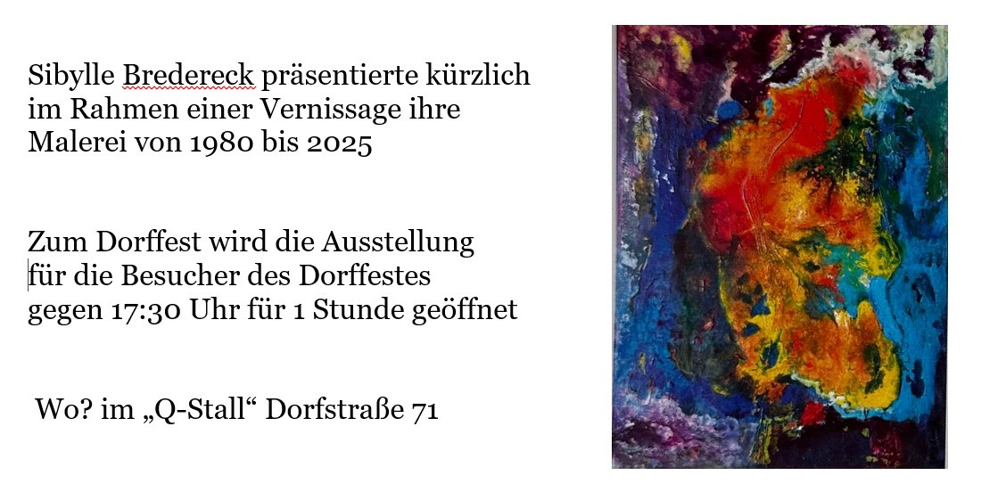 17.30 - 18.30 Uhr Ausstellung von Sybille Bredereck im "Q-Stall", Dorfstr. 71