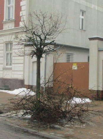 In der Nacht vom Sonntag , den 10. 01. Zum Montag, den 11. 01. 2016 wurde in der Otto-Nuschke-Str. vor dem Lotto-Laden ein Straßenbaum (Kugelahorn) ohne Absprache und Genehmigung der Gemeinde beschnitten.