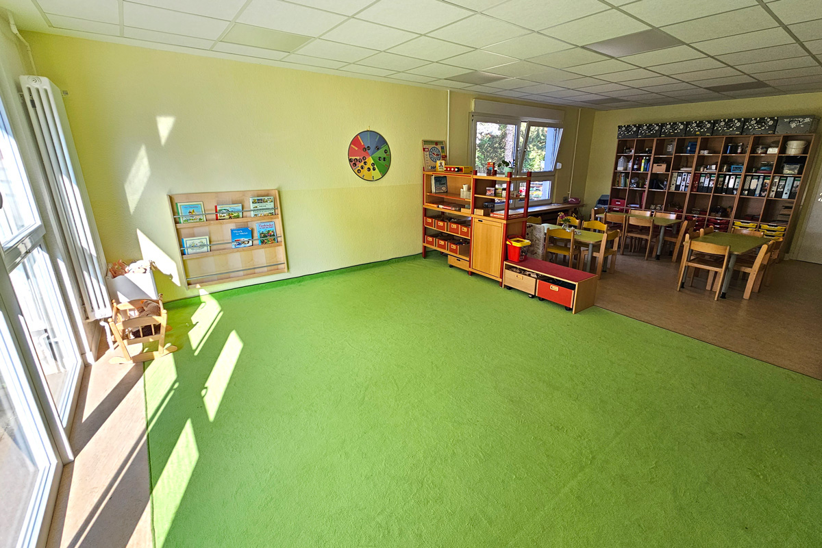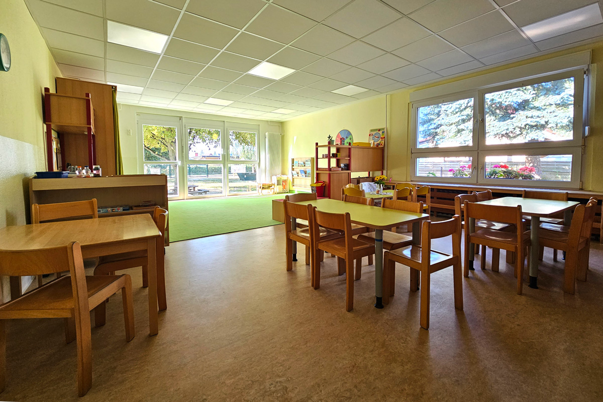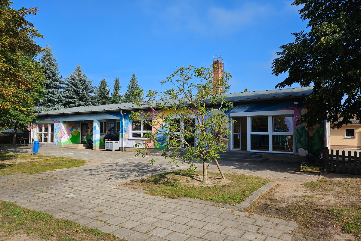 Das Kitagebäude besteht seit über 35 Jahren. Im vorderen Gebäude, dem „alten“ Kitagebäude, befindet sich der Elementar- Bereich, es wird durch den 2011 erbauten Krippenbereich ergänzt. Wir betreuen Kinder im Alter von 1 Jahr bis zum Schuleintritt.