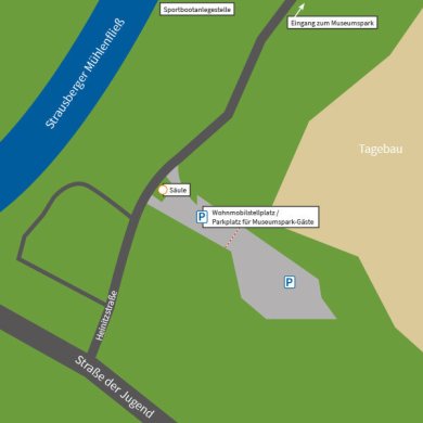Na parkingu przy ulicy Heinitzstraße (Museumspark der Baustoffindustrie) znajduje się miejsce parkingowe dla kamperów i przyczep kempingowych.