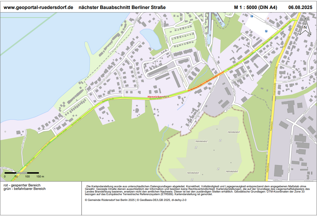 На Берлінерштрассе вздовж автобану L 233 у районі Хеннікендорф громади Рюдерсдорф під Берліном (земля Меркіш-Одерланд) розпочинається новий етап будівництва. З середи, 20 серпня 2025 року, на будівельній ділянці між перехрестями Лінденвег та Бергштрассе буде організовано безпеку руху, яка триватиме до кінця жовтня 2025 року.