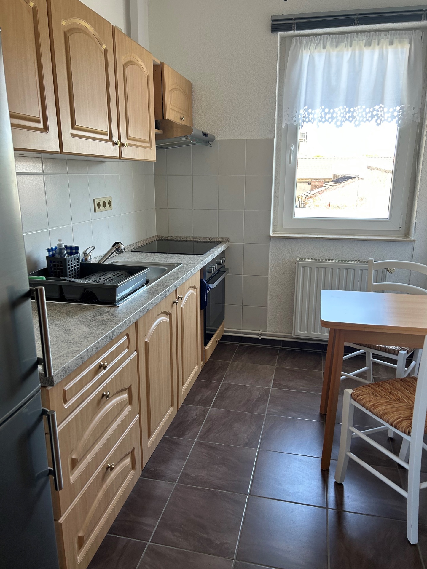 - повністю обладнана кухня зі столом, 2 стільцями, електричною плитою з духовкою, холодильником/морозильною камерою, кавоваркою, чайником, тостером, мікрохвильовою піччю, посуд і столові прилади