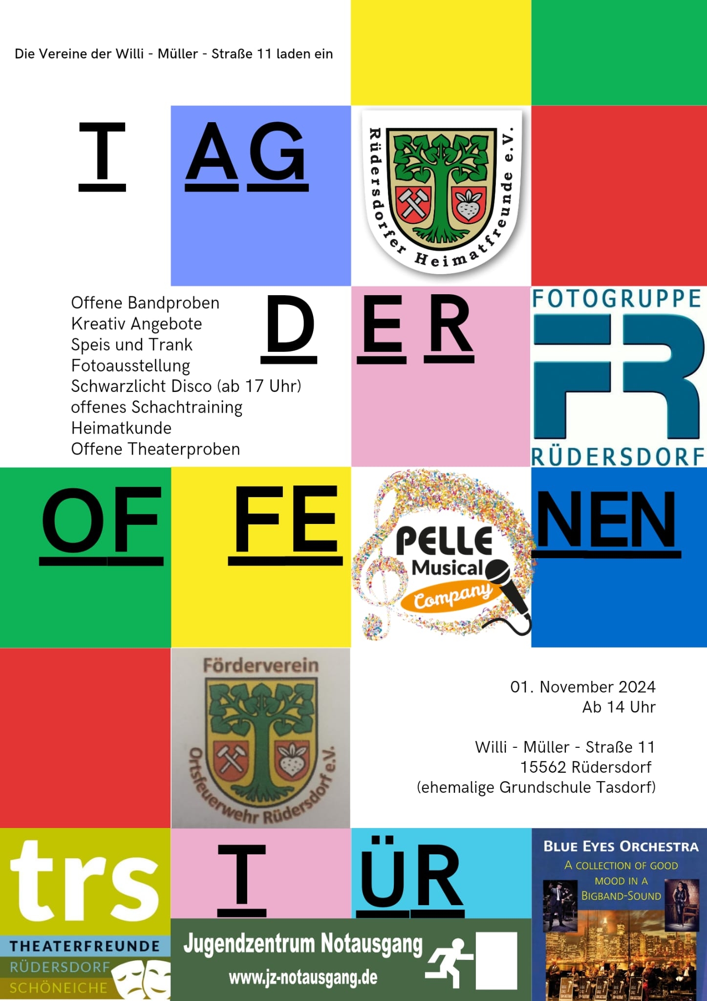 Die Vereine der Willi - Müller Straße 11 laden herzlich alle zum Tag der offenen Tür am 1. November, ein! Beginn 14 Uhr. Es gibt verschiedene tolle Angebote für jung und alt: