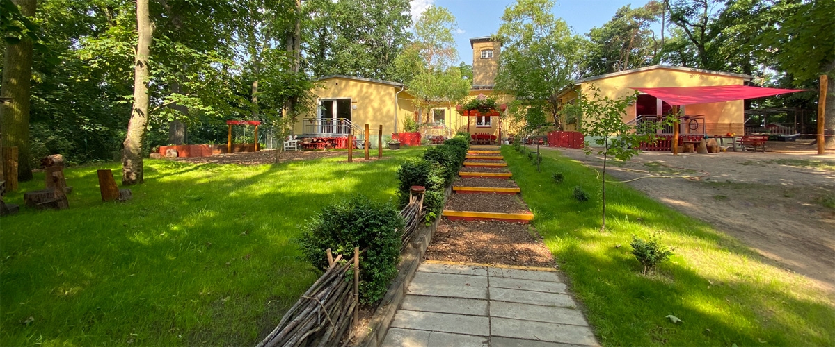 Der Gartenbereich erstreckt sich fast um die ganze Einrichtung, ist kindgerecht gestaltet und lädt somit zu jeder Jahreszeit zum Spielen, Toben, Ausruhen und kreativem Handeln ein. Kinder können hier ihre Sinne schärfen, sich ausprobieren und ihre Bewegungsfreiheit ausleben.